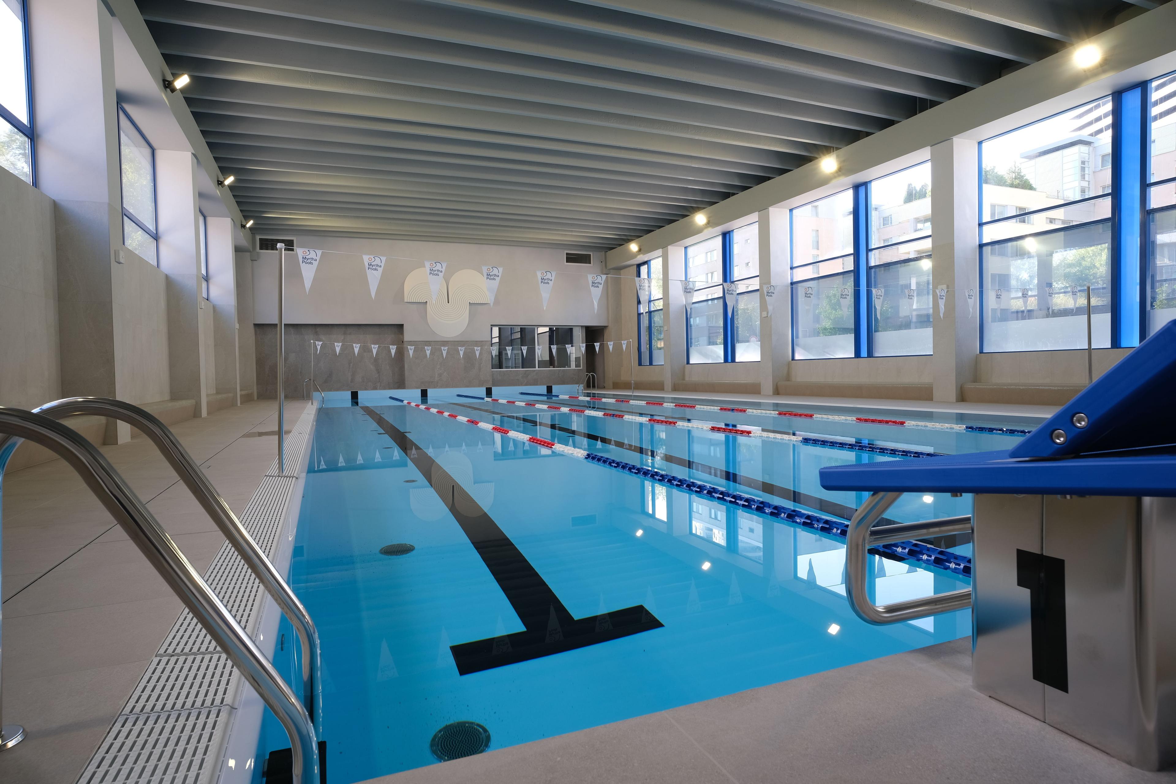 • krytý 4-dráhový 25-metrový výučbový bazén s maximálnou kapacitou celého bazéna 48 osôb (resp. 12 osôb pre jednu dráhu).